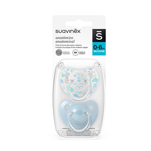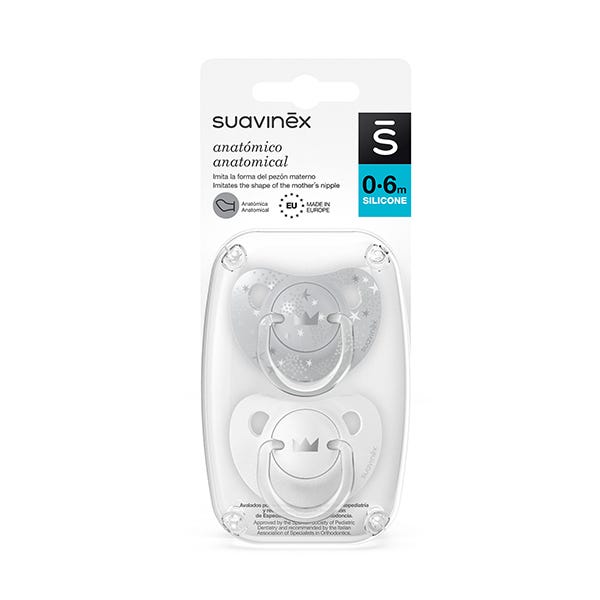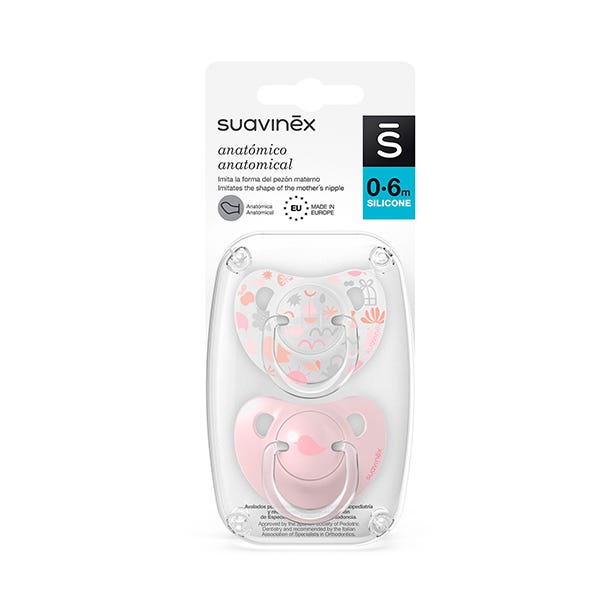 Pack Chupetes Suavinex con tetina anatómica de silicona, 2 unidades.