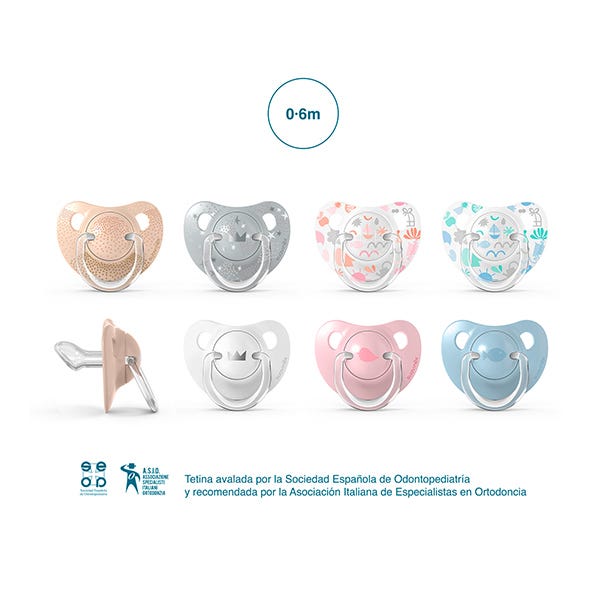 Tetinas de chupetes avaladas por la Sociedad Española de Odontopediatría, SEOP y, aconsejadas por la Asociación de especialistas Italianos en Ortodoncia, ASIO.