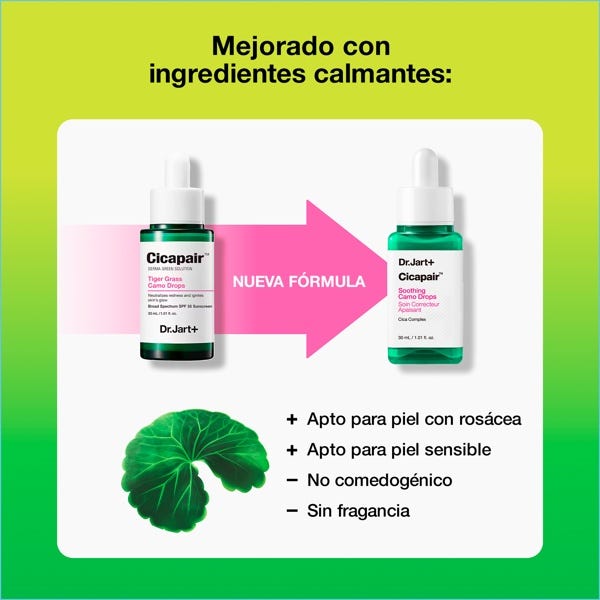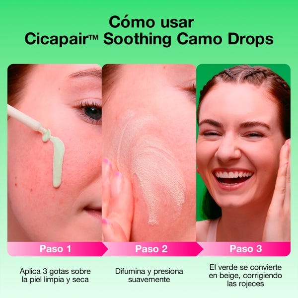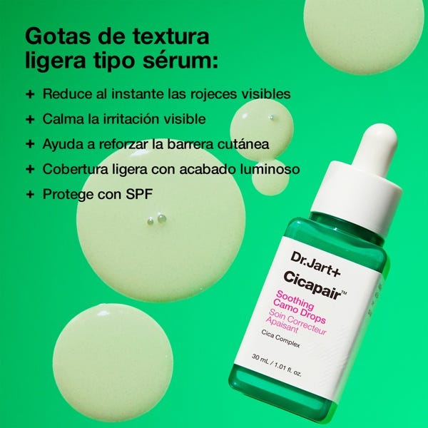 Soothing Camo Drops SPF 20 cubre las rojeces y las camufla al instante. Calma la irritación visible en 2 semanas y ayuda a reforzar la barrera cutánea, ofreciendo reducción de rojeces, cuidado de la barrera y protección.
