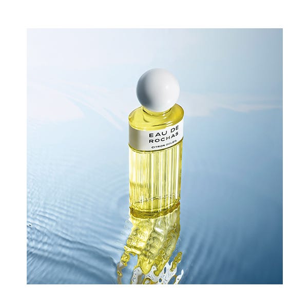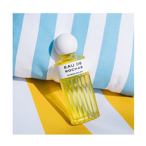 Eau de Rochas Citron Soleil nace con la intención detransportarnos a la Rivera Mediterránea regada por campos llenos de limoneros que cubren el ambiente con un sutil aroma cítrico y refrescante.