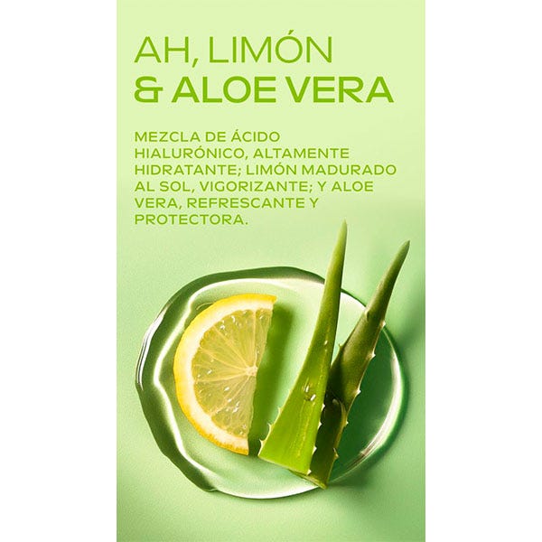 Con aloe vera biológico, extracto natural de limón y ácido hialurónico, esta leche corporal proporciona +98 % de hidratación inmediata* tras solo una aplicación. Su fórmula ligera se absorbe rápidamente sin dejar sensación grasa, aportando una hidratación intensiva de hasta 24h**. El frescor se siente al instante y su fragancia cítrica estimula los sentidos.