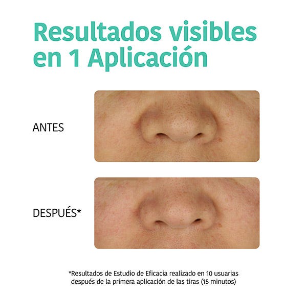 Solo tienes que humedecer una tira limpiadora, aplicarla sobre tu nariz y esperar 5 minutos.
