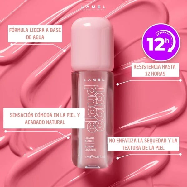 El rubor líquido Cloud Color ofrece una textura ligera y sedosa. Su fórmula a base de agua se desliza suavemente, proporcionando un color delicado que aporta frescura inmediata a tu rostro. Además, su práctico aplicador permite un control preciso de la intensidad del tono.