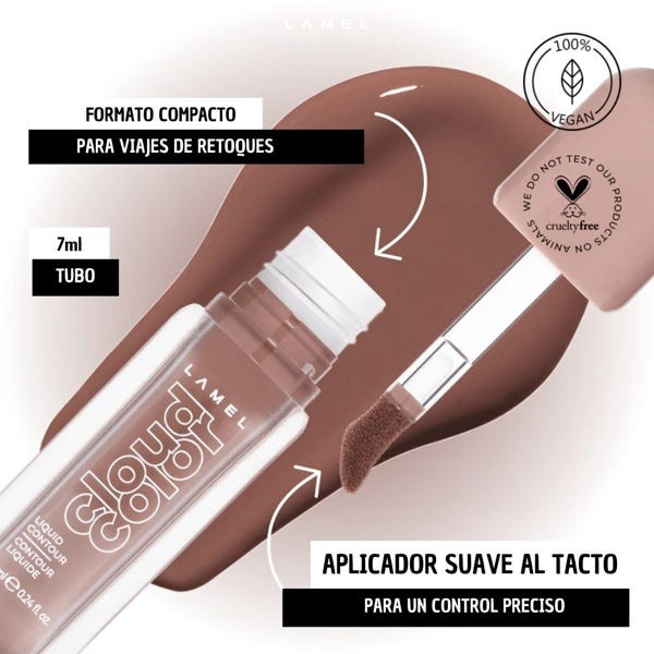 El contorno líquido Cloud Color es perfecto para conseguir un efecto natural. Su fórmula cremosa se difumina fácilmente sin manchas, ofreciendo un acabado duradero. Ideal para aplicar en capas y ajustar la intensidad, se retira con facilidad para un look sutil y controlado.