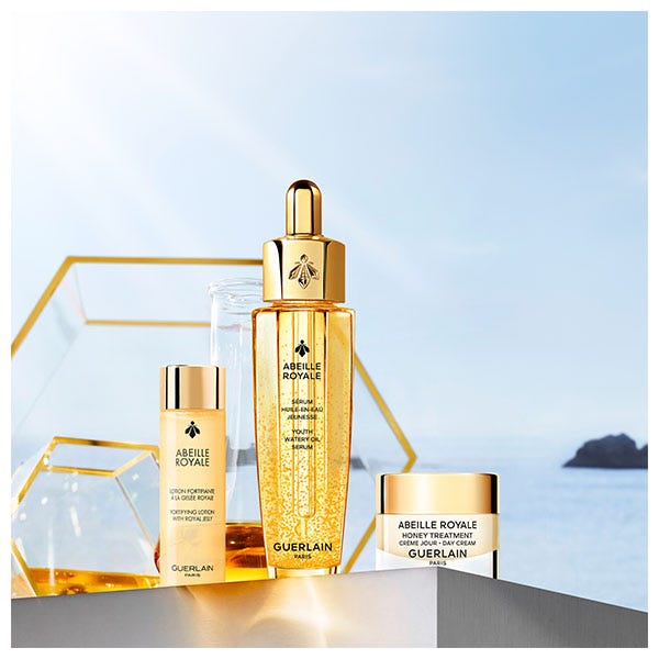 Tras 15 años de investigación, 9 patentes y 9 publicaciones, el Sérum Aceite Acuoso de Juventud extrae su poder reparador de tres mieles de abeja negra. Gracias a su textura de difusión profunda¹, el sérum actúa en el corazón de la epidermis. El producto potencia los mecanismos de autorreparación de la piel. Reparada en profundidad¹, la piel recupera su vitalidad y luminosidad y las arrugas se rellenan visiblemente. Su fórmula exclusiva es ligera y universal y está elaborada con un 99 % de ingredientes de origen natural².
