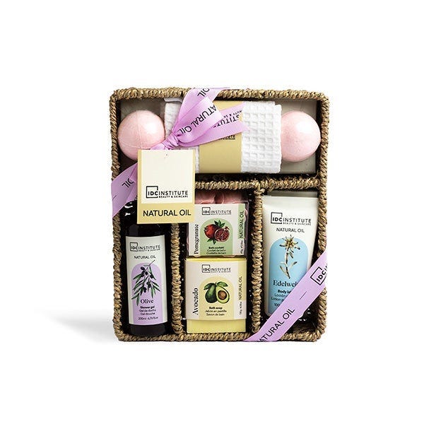 Esta caja reutilizable con productos naturales es el regalo perfecto para aquellos que les gusta cuidarse ya que incluye un gel de baño, una loción corporal, un jabón sólido, confeti para baño, 2 bombas de baño y una toalla facial.