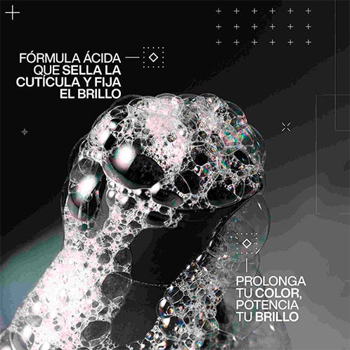 Formulado para prolongar el color y potenciar el brillo, este champú con pH ácido limpia suavemente, sella la cutícula y ayuda a mantener un color vibrante y duradero. Aplicar sobre el cabello húmedo, hacer espuma y aclarar. En caso de contacto con los ojos, aclarar inmediata y abundantemente.