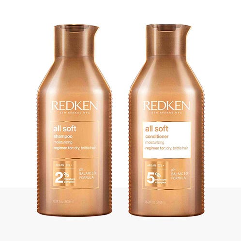 Este cofre de REDKEN contiene el champú y acondicionador de la línea All Soft, diseñados específicamente para cabello seco y frágil. Formulados con aceite de argán, estos productos proporcionanuna suavidad intensa. Además, contienen un complejo de hidratación que repone y mantiene los niveles de hidratación, aumentando la flexibilidad del cabello.