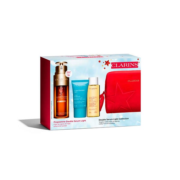 Este cofre contiene tres texturas ligeras para un rostro radiante: Double Serum Light Texture, formulado con 22 de los extractos de plantas más potentes para combatir los signos de la edad, la crema Hydra-Essentiel, que hidrata y redensifica intensamente, y la Lotion Tonique Hydratante que limpia la piel a la perfección.
