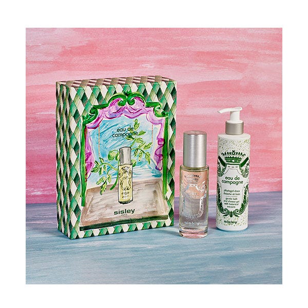 La fragancia revitalizante Eau de Campagne de Sisley cobra protagonismo en este cofre ilustrado por el artista británico Luke Edward Hall. Decorado con alegres ilustraciones de un teatro y hojas de tomate, evoca el aroma fresco y verde del eau de toilette. Con un equilibrio perfecto entre notas cítricas y herbáceas sobre un fondo chipre, Eau de Campagne inspira una sensación de bienestar y elegancia.