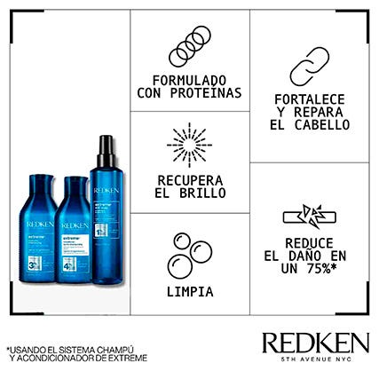 Este cofre de REDKEN contiene el champú y acondicionador , diseñados para fortalecer y reparar el cabello dañado y quebradizo. Gracias a su fórmula con proteína y complejo fortalecedor que trata el cabello de la raíz a las puntas, estos productos ofrecen una reparación profunda y duradera.