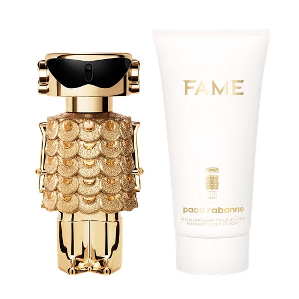 Este set de regalo contiene una Fame Intense Eau de Parfum Intense 50 ml y una Loción Corporal 75 ml.
