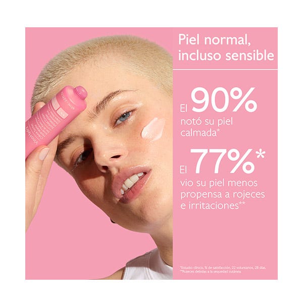 Hidrata y calma las pieles frágiles, disminuye la sensibilidad cutánea y las rojeces. Su textura fresca como un sorbete y ultraligera, se funde instantáneamente en la piel.