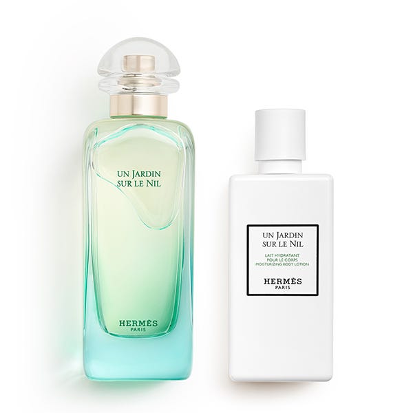 El estuche se compone de Eau de toilette Un Jardin sur le Nil (100 ml), Eau de toilette Un Jardin sur le Nil (formato de viaje de 15 ml) y jabón perfumado (50 g).