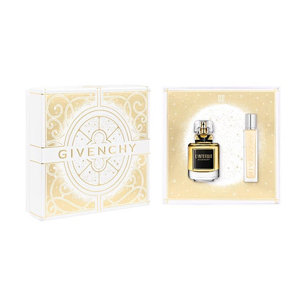Esta temporada navideña, Givenchy te invita a su pequeño mundo imaginario: una edición en miniatura de su Hôtel Particulier encapsulada en un mágico set de regalo. Regala lo inesperado con un set de fragancias para mujer de Givenchy compuesto por un L'Interdit Parfum Eau de Parfum y un spray de viaje recargable.