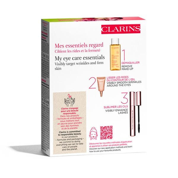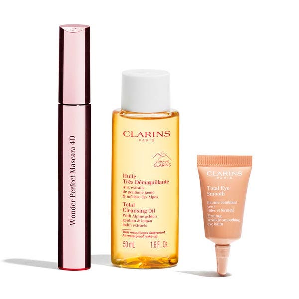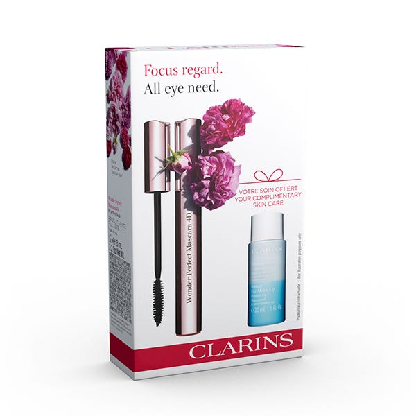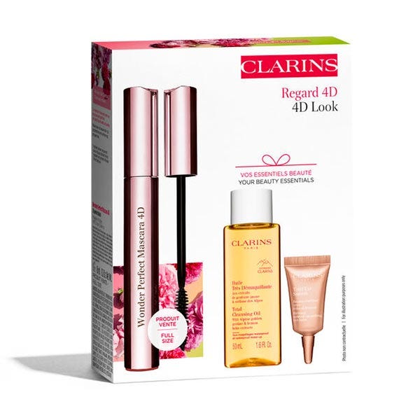 El Cofre Máscara Wonder Perfect 4D de Clarins es el aliado perfecto para un maquillaje de ojos impecable y unos labios hidratados y con brillo natural. Este set combina la máscara de pestañas Wonder Perfect 4D, que aporta volumen y definición, con la base iluminadora SOS Primer White, que unifica la piel, y el icónico Lip Comfort Oil, que nutre y embellece los labios.