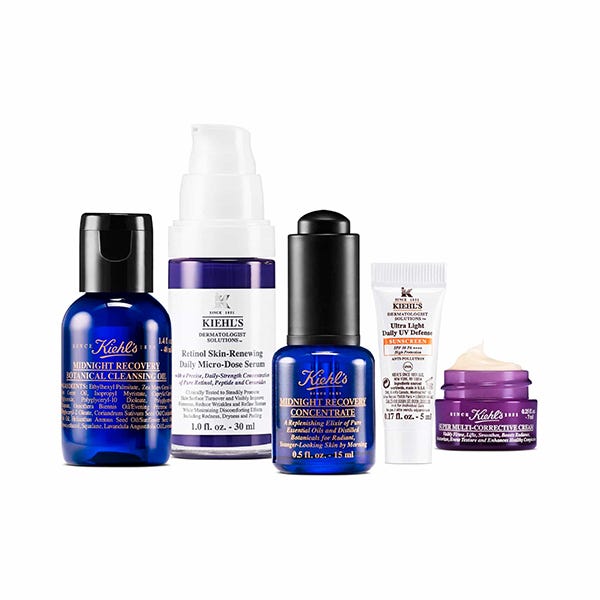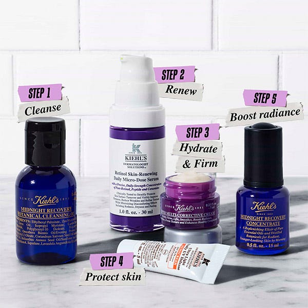 Limpia, hidrata y renueva la piel para una apariencia más joven con este set de rutina nocturna definitivo de Kiehl's.