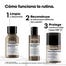 Y la Mascarilla sin aclarado Absolut Repair Molecular, también con la tecnología de reparación de enlaces y 5 aminoácidos esenciales, sella la reparación y proporciona una protección duradera. Esta mascarilla deja el cabello suave, brillante y completamente revitalizado, protegiéndolo de futuros daños.