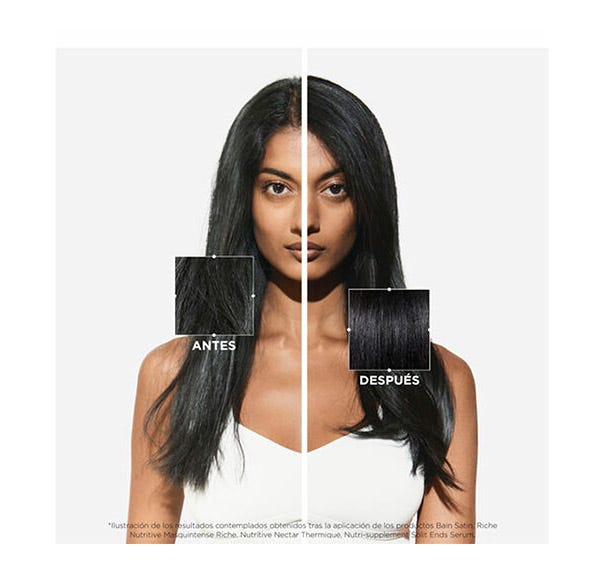 Bain Satin Riche: champú extremadamente nutritivo para el cabello muy seco. Con una textura de gel cremosa, limpia en profundidad y restaura el cabello seco para una mayor flexibilidad.