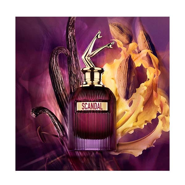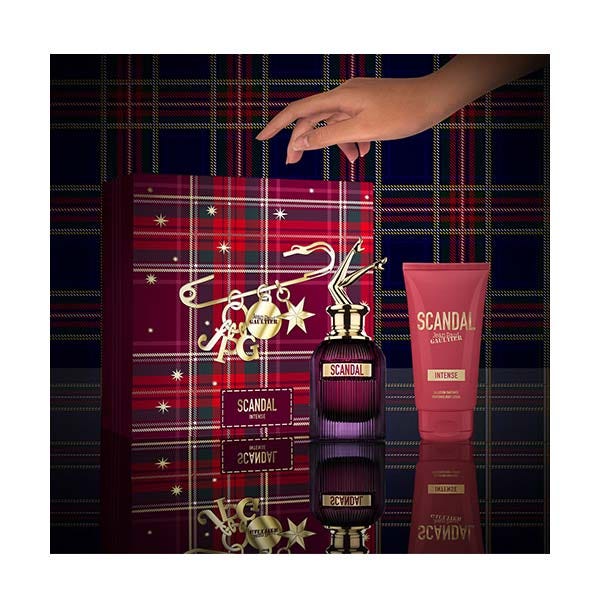 Salida inmediata del Scandal Express, el nuevo tren exclusivo de Jean Paul Gaultier. Al caer la noche, Scandal Intense difunde una fragante adicción al placer sin límites y a las veladas eternas. ¡Hola a la decadencia! ¡Adiós al decoro! El viaje promete ser mucho más emocionante que el destino. La más deseable e indisciplinada de las pasajeras luce las despampanantes piernas de un frasco violeta con rayas sensuales bajo su terciopelo rosa. Con su estela floral de vainilla, cada vagón olvida su destino. ¿Hasta dónde nos llevará? Respuesta en destino...