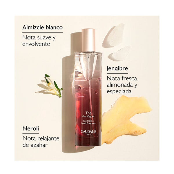 Nuestros tratamientos corporales Thé des Vignes se inspiran en las notas sensuales del Agua Fresca Thé des Vignes creada en 2011 por Mathilde Thomas, fundadora de Caudalie, con la ayuda del gran maestro perfumista Jacques Cavallier.