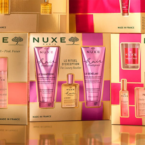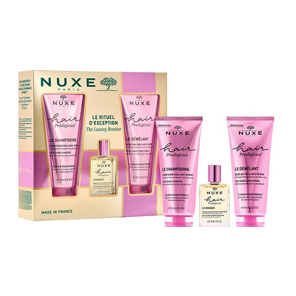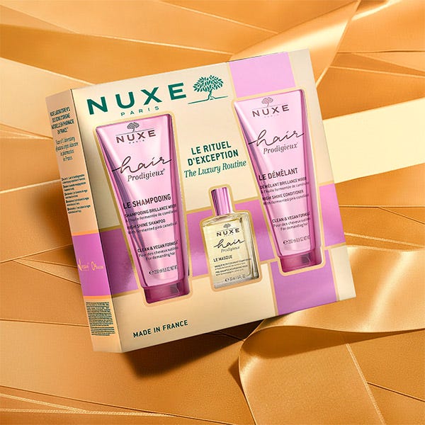Cofre Hair Prodigieux contiene: Un ritual de 3 cuidados con la fragancia icónica de Huile Prodigieuse®.