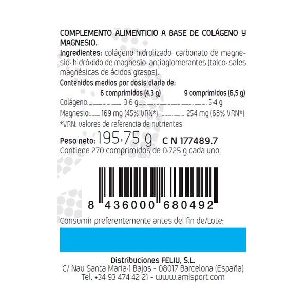 Ingredientes: colágeno hidrolizado, carbonato de magnesio,