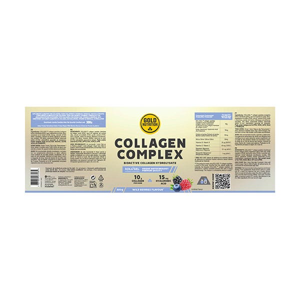 SOLUGEL™ collagen peptides (colágeno bovino hidrolizado) [83%], sales magnésicas de ácido cítrico, correctores de la acidez (ácido cítrico,), aromas, colorante (antocianidinas), ácido L-ascórbico, extracto de bambú (Bambusa arundinacea, exudado, 75% silicio), edulcorante (glucósidos de esteviol procedentes de estevia); hialuronato sódico [0,12%], colecalciferol, gluconato de manganeso. Puede contener trazas de gluten, huevos y altramuces