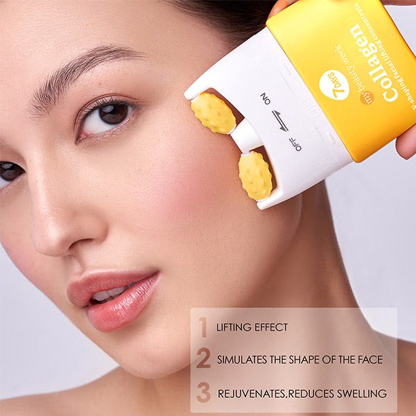 El rodillo con tecnología “FACE FIT” entrena los músculos, modela el contorno de la cara, el cuello y el escote, reduce la hinchazón, ayuda a mejorar la tez y profundiza la penetración de los componentes activos, además de apoyar la red de colágeno.
