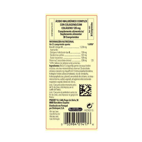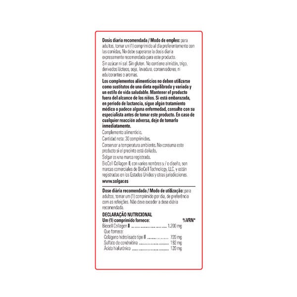 Aporta 1200 mg de colágeno (BioCell Collagen II®) y 100 mg de vitamina C en un único comprimido.