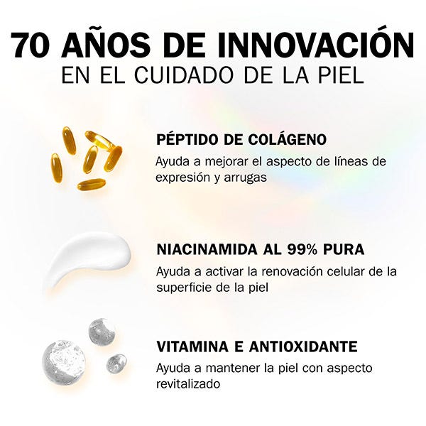 Junto con la vitamina B3, la fórmula actúa rápidamente para estimular la piel con una hidratación intensa que dura 24 horas y actúa con el tiempo para suavizar la textura de la piel y recuperar su barrera protectora y así conseguir una piel fuerte y radiante.