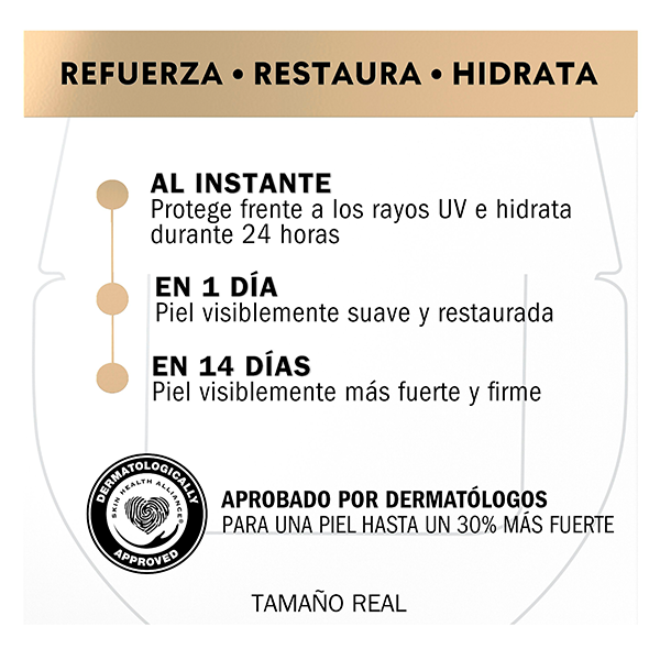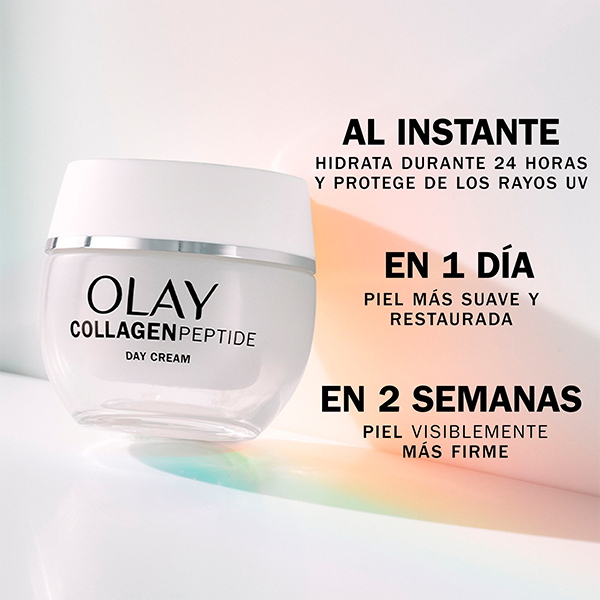 Revela una piel visiblemente más fuerte y radiante en 14 días con la crema de día Olay Regenerist Collagen Peptide24 con SPF 30.