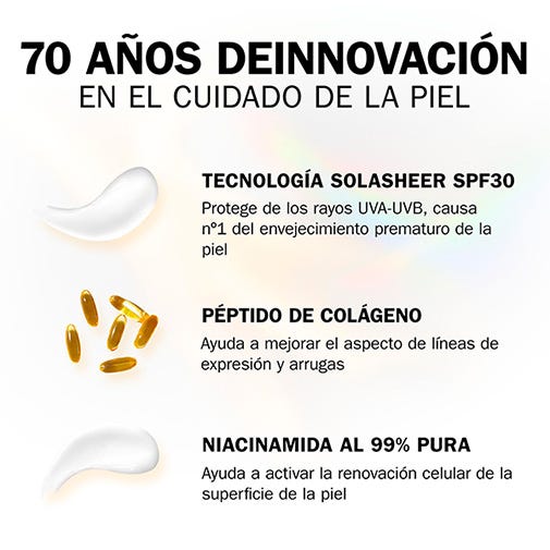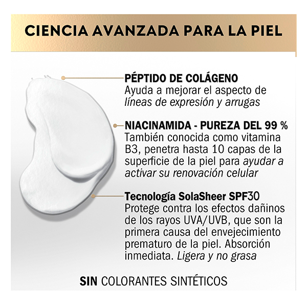 Fórmula exclusiva con péptidos de colágeno y vitamina B3.
