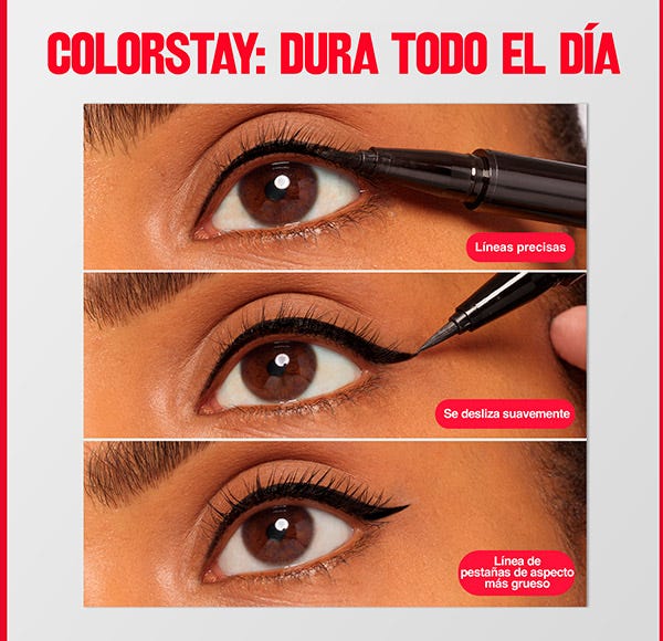 La tecnología ColorStay Adapti-Flex Color Lock ofrece un color negro intenso y intenso que dura en un solo paso.