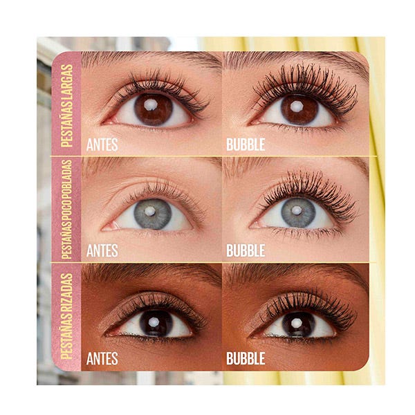 La máscara Colossal Bubble Waterproof ofrece un volumen ligero que infla el 100% de tus pestañas y una separación impecable. Su fórmula que infla las pestañas y el cepillo peine inflador te permiten dar volumen a cada pestaña.