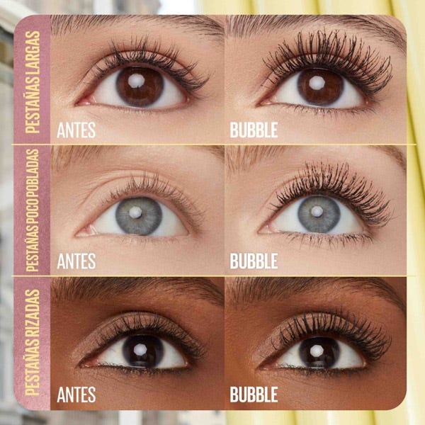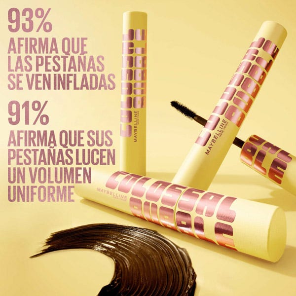 La máscara Colossal Bubble ofrece un volumen ligero que infla el 100% de tus pestañas y una separación impecable.