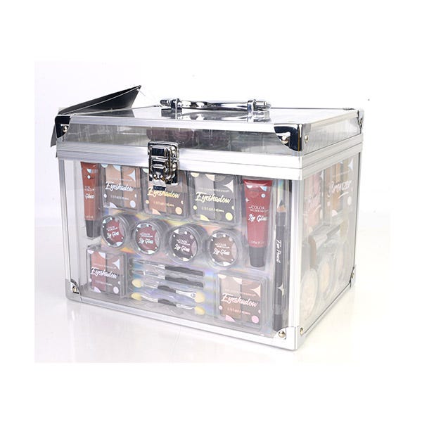 Colour Delights Beauty Case. Un maletín transparente de 29 piezas en el que identificaras todos los productos desde fuera fácilmente. Con los bordes exteriores y el asa metalizados para darle un toque CHIC de contraste.