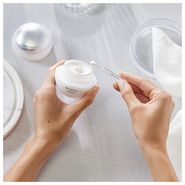 Aplicar por la mañana y/o por la noche como último paso del ritual de cuidado habitual. Utilizar la espátula incluida para tomar la cantidad equivalente a una perla y distribuir suavemente por todo el rostro. Puede aplicarse en capas adicionales en zonas especialmente secas.