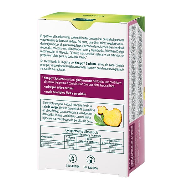 El principal ingrediente de Kneipp Saciante es el glucomanano de Konjac, que es el que proporciona sus beneficios en pérdida de peso y salud cardiovascular.