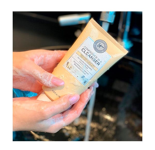 Masajear suavemente sobre la piel húmeda durante 30 segundos cada mañana y noche. Enjuagar y secar. A continuación, seguir con tu tratamiento favorito de IT COSMETICS o crema hidratante.