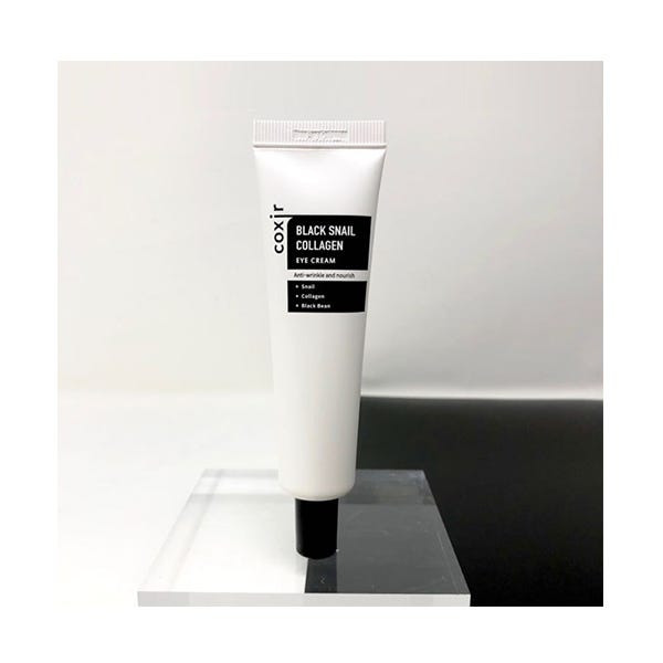 Contorno de ojos formulado con extracto de baba de caracol, colágeno y extracto de ingredientes de color negro como frijol negro, sésamo negro y arroz negro que tiene efectos antioxidantes.