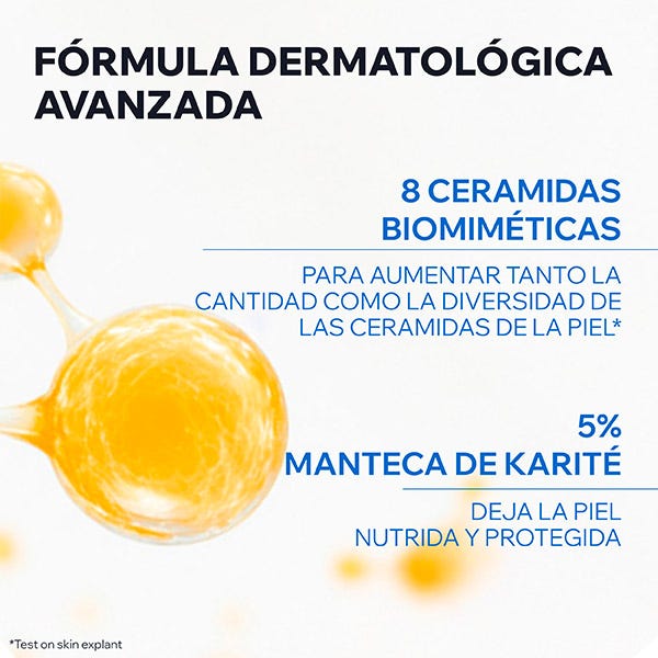 INGREDIENTES: 8 CERAMIDAS BIOMIMÉTICAS + 5 % DE MANTECA DE KARITÉ.