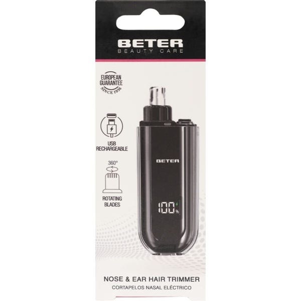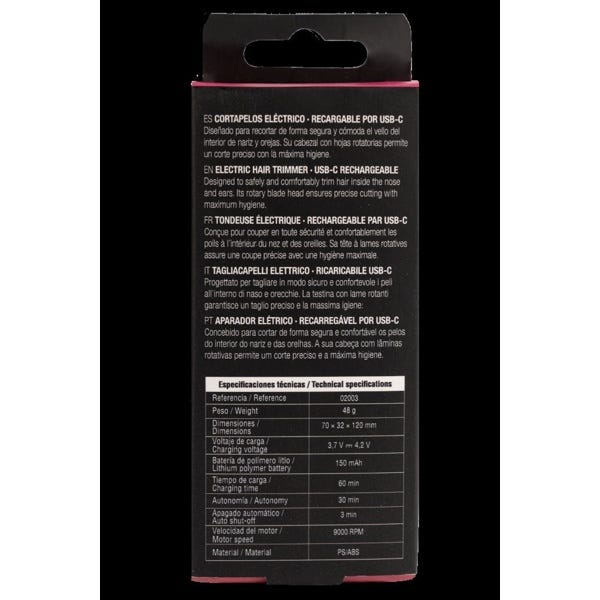 Contenido: Cortapelos nasal eléctrico / Cable de carga USB / Cepillito de limpieza / Instrucciones