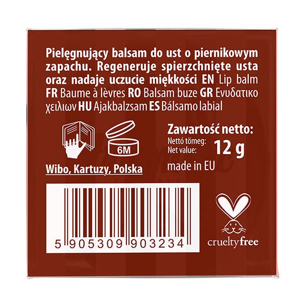 Bálsamo labial nutritivo con aroma a pan de jengibre.