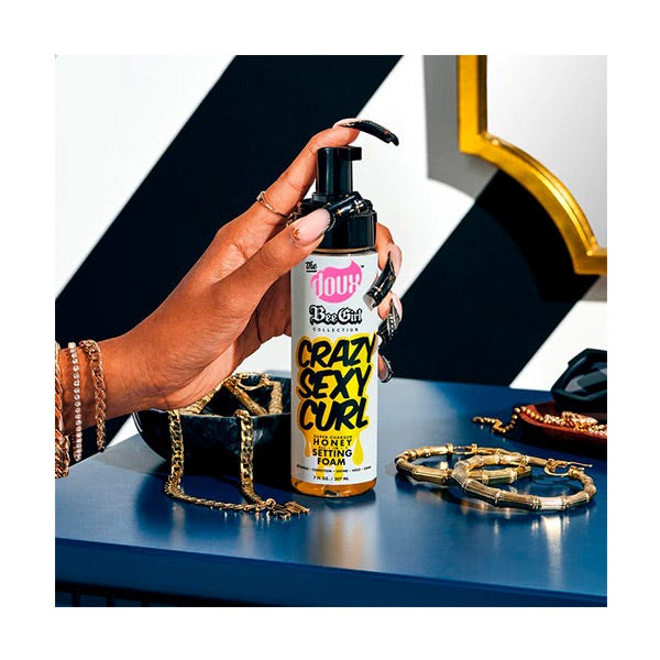La espuma fijadora con miel CRAZYSEXYCURL™ trae la esencia de Left Eye, T-Boz y Chill a un frasco. Esta espuma fijadora con infusión de miel superó las carencias de otros productos de peinado y dijo "nada de exfoliantes": solo queremos productos que cumplan su función. Hablamos de UNA espuma que acondiciona tus rizos, desenreda, define tu patrón y fija tu peinado con una fijación fuerte pero flexible. ( Respiro hondo )