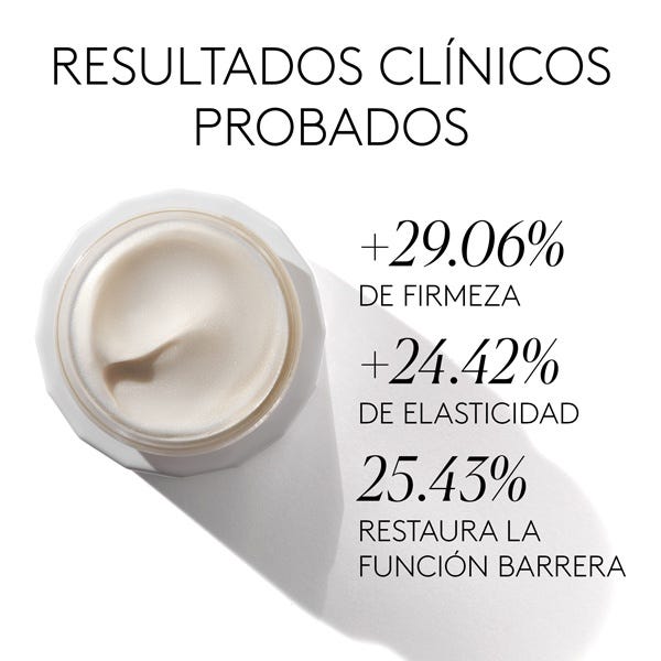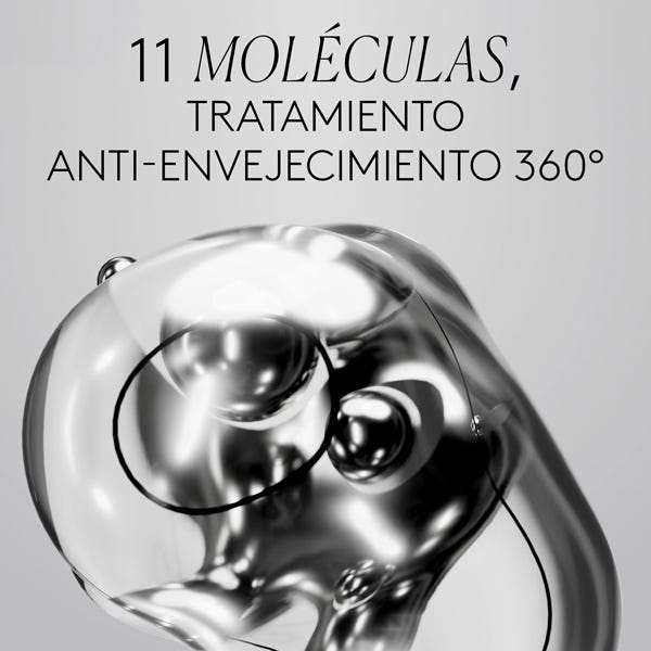 Es una Terapia Molecular única con 11 moléculas activas que mejoran la comunicación entre las células de tu piel para atacar los 5 signos que intervienen directamente en el envejecimiento como arrugas, luminosidad, manchas, textura y flacidez.
