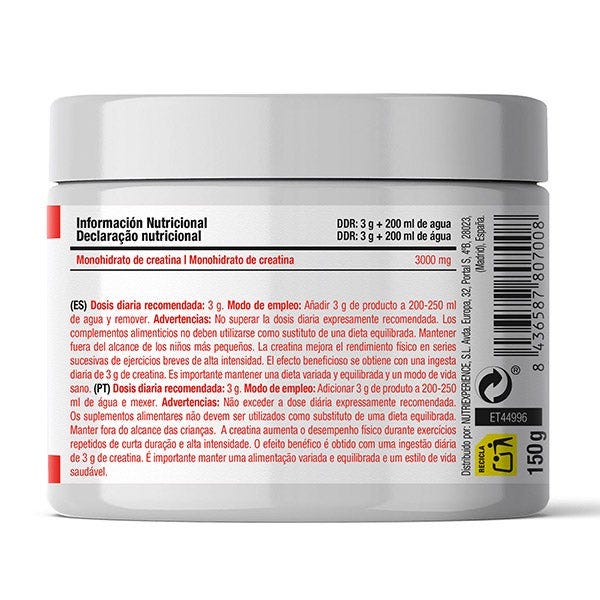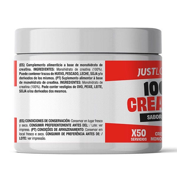 INGREDIENTES: Monohidrato de creatina (100%). Puede contener trazas de GLUTEN, HUEVO, PESCADO, LECHE, SOJA y/o derivados de los mismos.