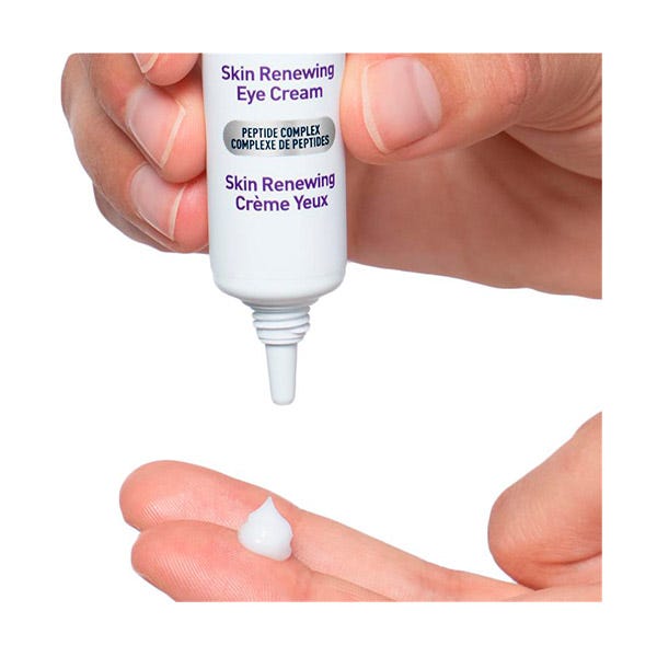 Después de la limpieza, desenroscar el tapón y aplicar la Crema Reafirmante Contorno de Ojos Skin Renewing CeraVe en el dedo.