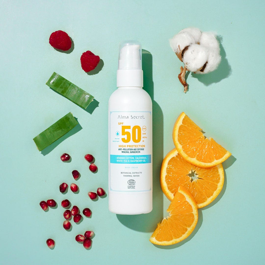 Un fotoprotector eficaz de amplio espectro que protege de la radiación solar UVA, UVB, IR (Infrarrojos) y HEVis (Luz Azul) gracias a la combinación de filtros físicos de origen natural (Dióxido de Titanio - Óxido de Zinc) y el ARABIAN COTTON®, un activo biotecnológico natural e innovador extraído de células madre del Algodón Árabe, una planta que vive en condiciones extremas de sol y que actuará reforzando el propio mecanismo de defensa de las células de la piel para combatir el fotoenvejecimiento, las quemaduras solares y la aparición de manchas de pigmentación.