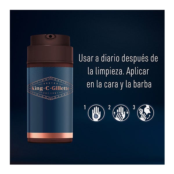 Está enriquecida con vitamina B3 (niacinamida), provitamina B5 (pantenol) y un toque de aceite de argán para hidratar y aliviar el picor de la piel seca. La fórmula ligera de King C. Gillette suaviza las barbas erizadas de 3 días para dar una sensación suave y lisa.